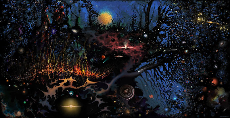 a comets tail or from the luminous dust of a supernova. This painting